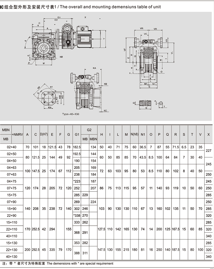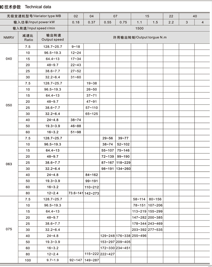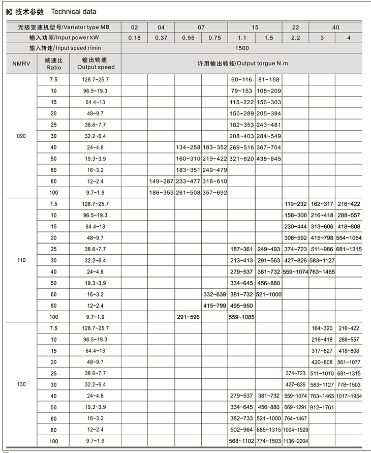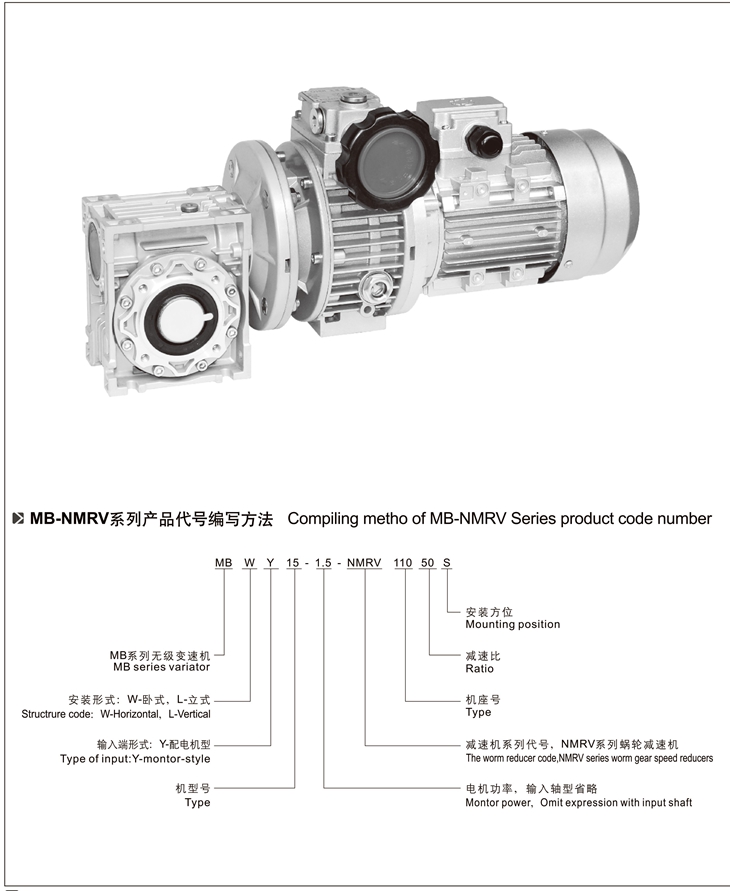 MB-NMRV組合系列無(wú)級(jí)變速機(jī)是由MB無(wú)級(jí)變速機(jī)與RV蝸輪減速機(jī)完美組合。