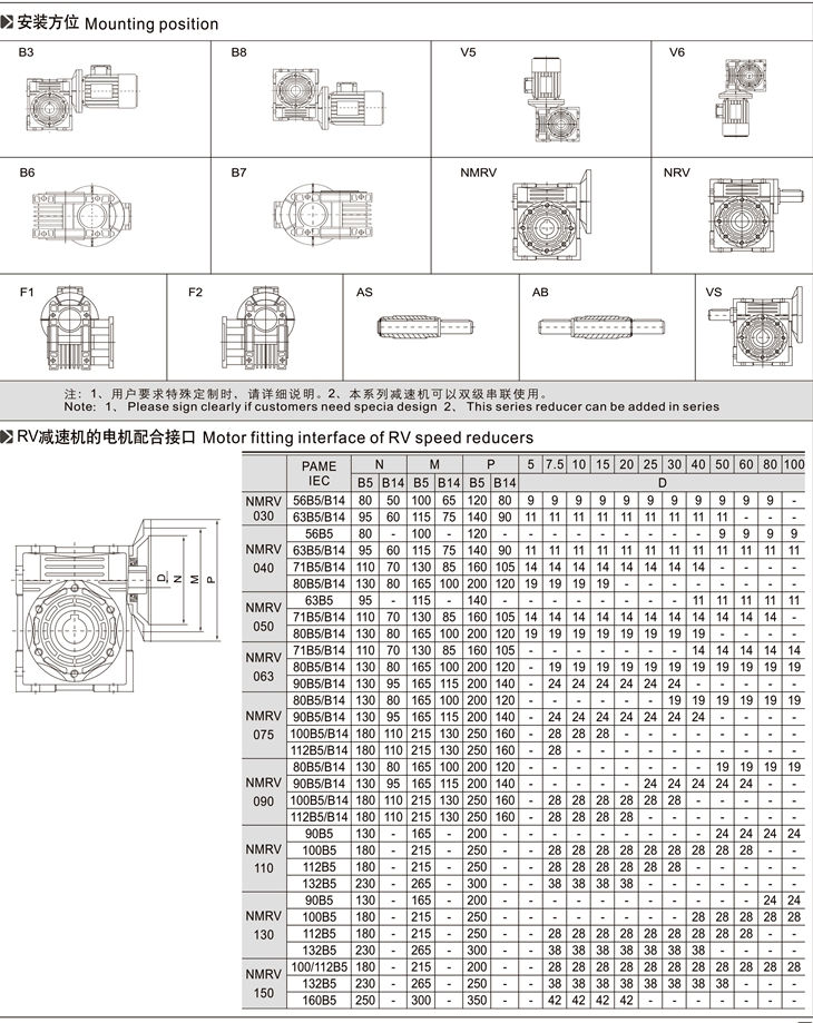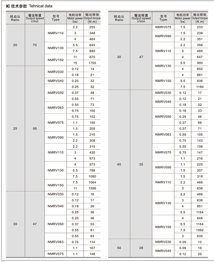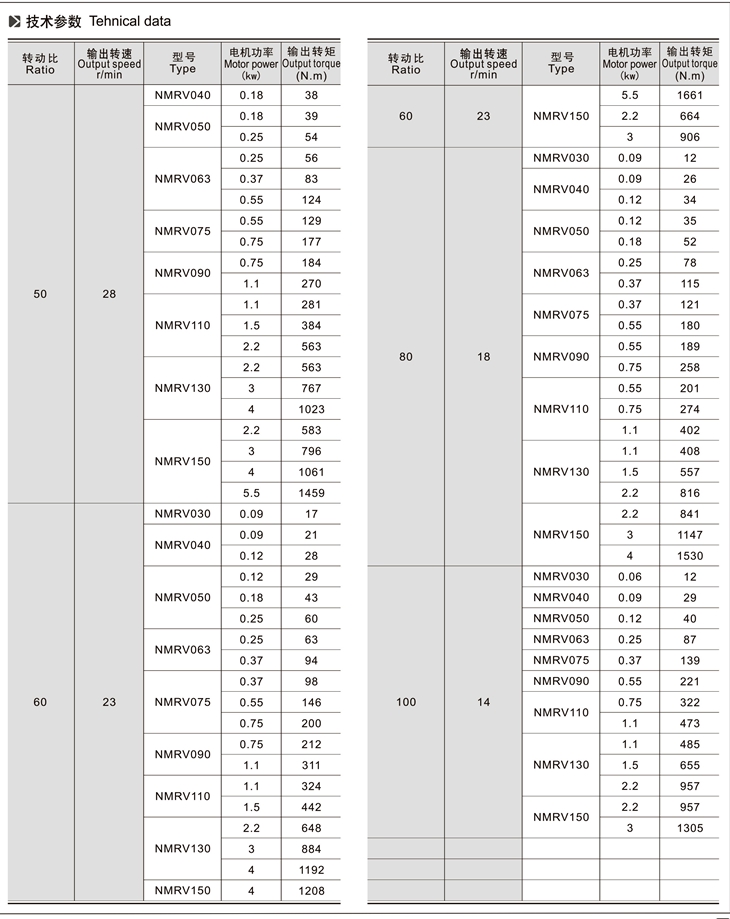 4、與RV、NMRV、NRV蝸輪蝸桿減速機配套的電機必須合適在低溫環(huán)境中工作;