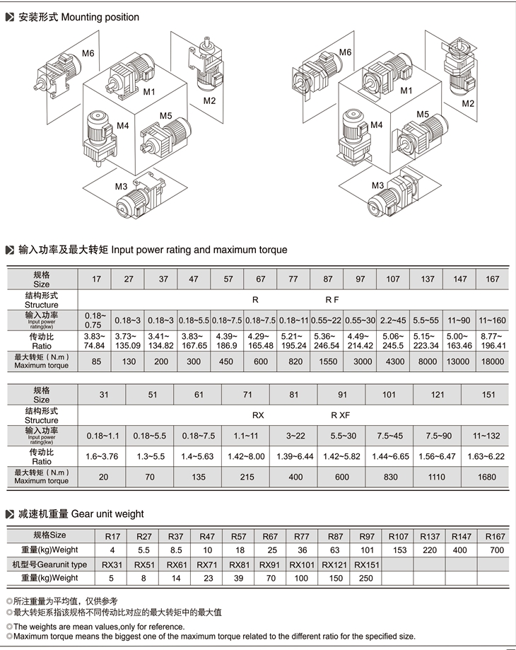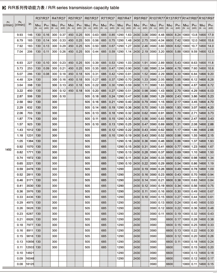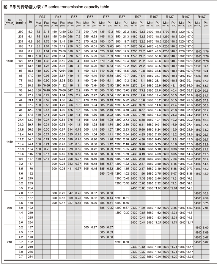 R系列斜齒輪減速機技術參數(shù):