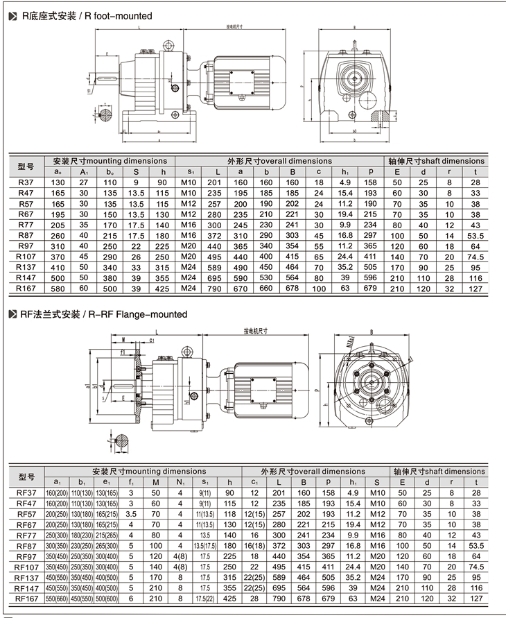 RF:底腳法蘭安裝 RM:法蘭安裝帶加長軸承箱